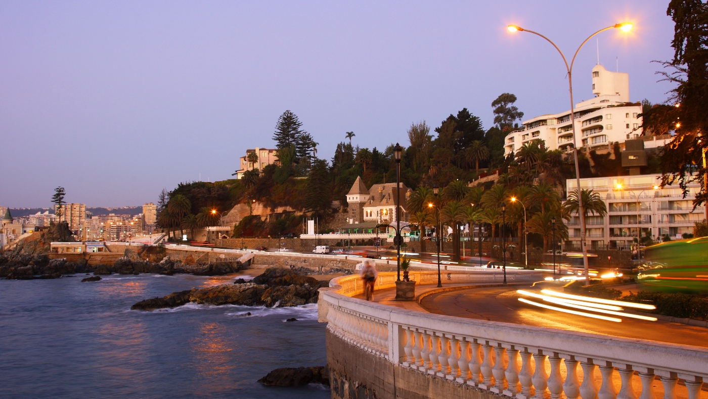 Conocida como la ciudad jardín, Viña del Mar es un destino turístico popular por sus áreas verdes, jardines y playas como Playa Reñaca y Playa Acapulco. El Castillo Wulff, construido en 1906, es un símbolo icónico situado en un acantilado con vistas al mar.